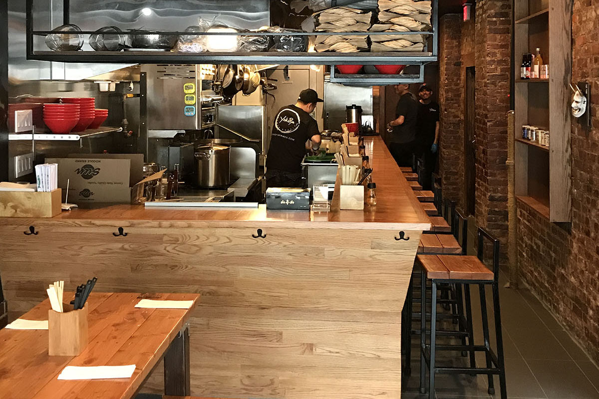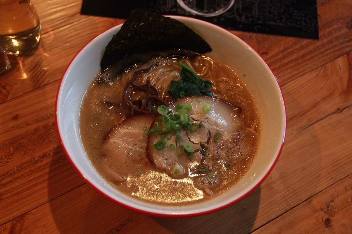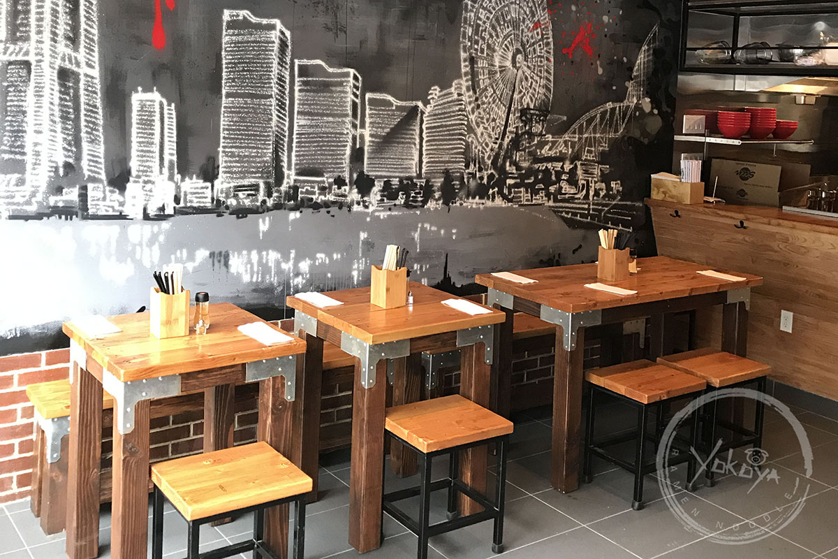 Enjoy a hot bowl of ramen in front of our glorious wall of Yokohama!