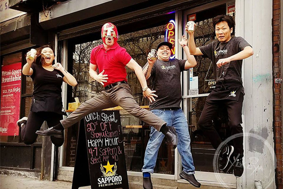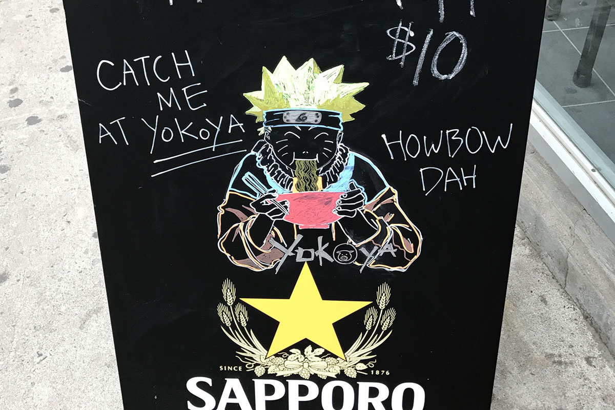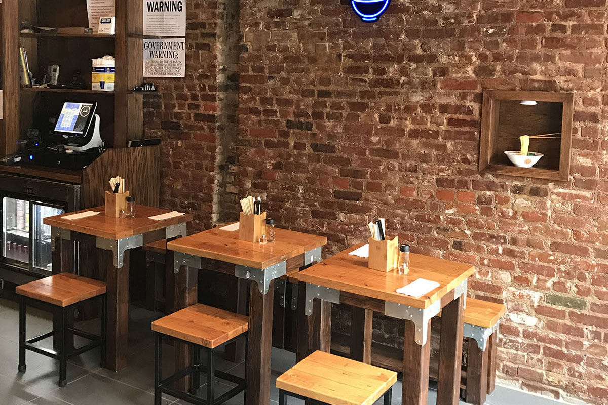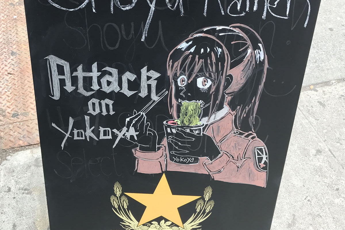 Enjoy a hot bowl of ramen in front of our glorious wall of Yokohama!