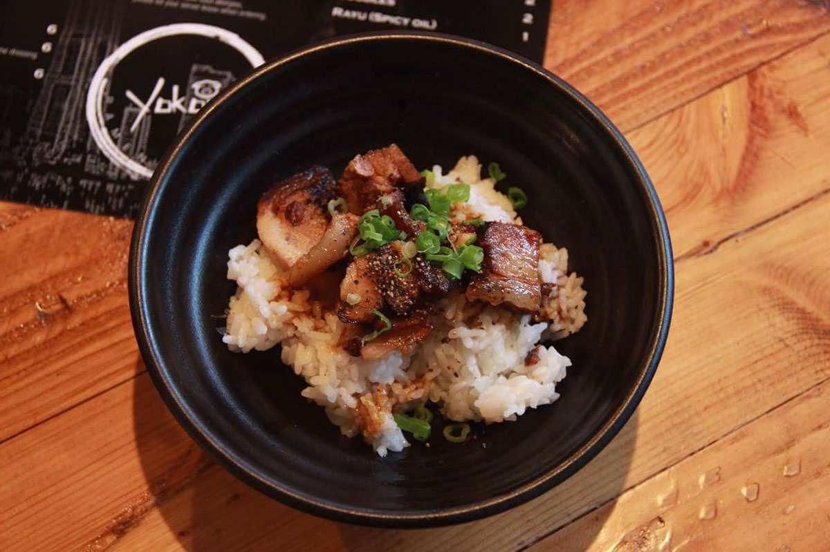 Chashu pork over rice with scallion chashu sauce